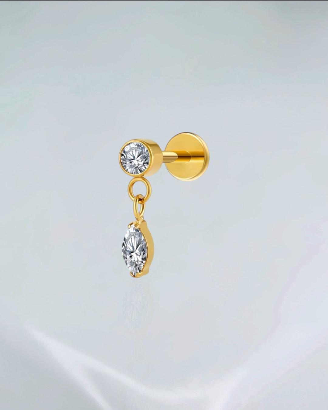 Piercing labret pingente titânio PVD gold